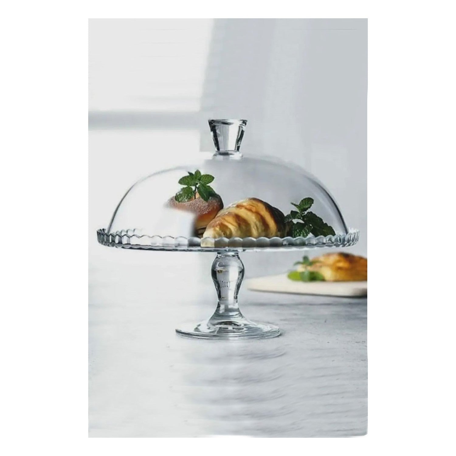 Pasabahce Patisserie Serviertablett Tortenplatte mit Fuß und Glashaube